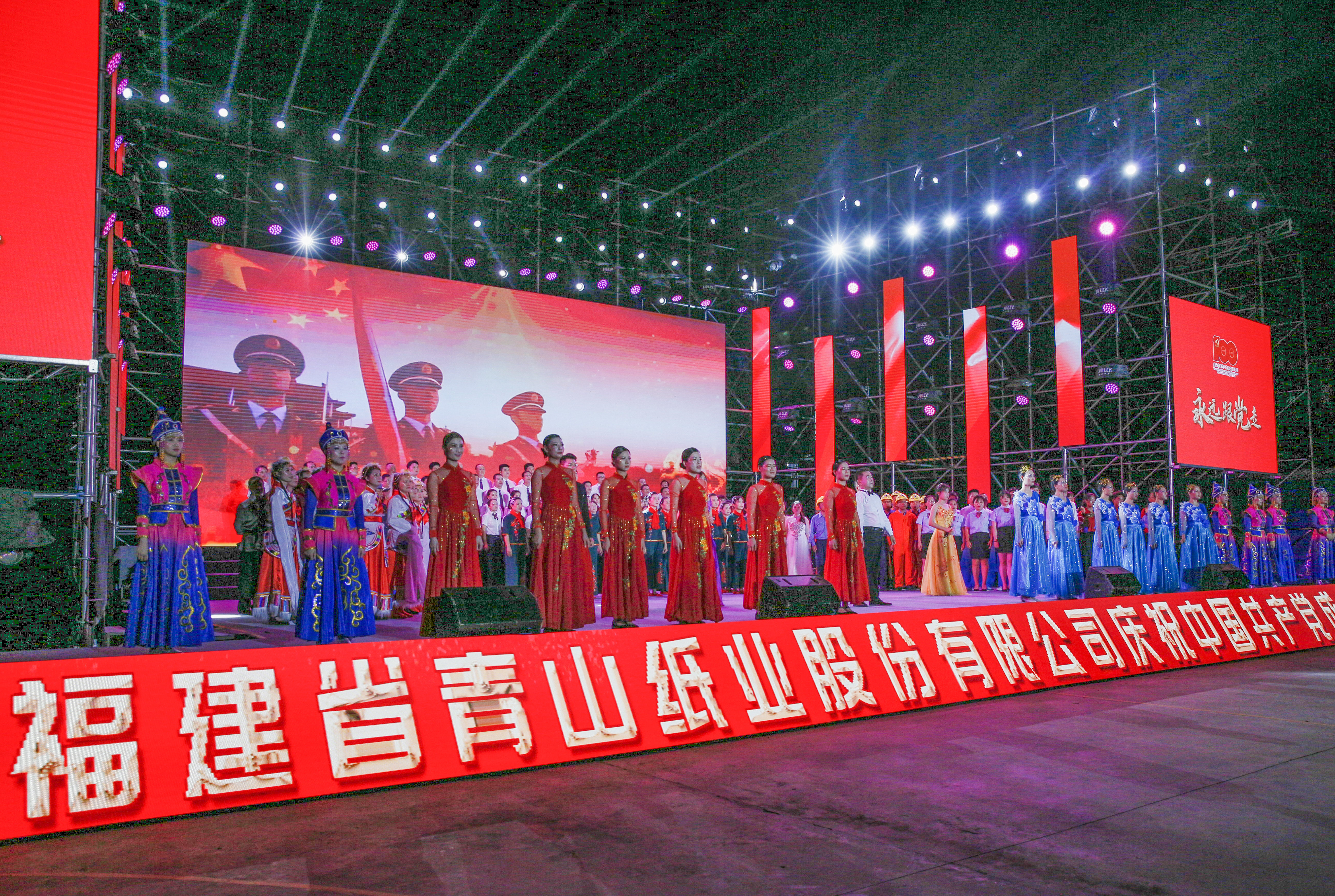 6月16日晚,以“永远跟党走”为主题的庆祝中国共产党成立100周年大型文艺汇演在公司灯光球场隆重举行。福建省轻纺(控股)有限责任公司党委委员、副总经理陈国樑、公司党委书记、总经理林小河等公司领导班子成员与职工群众在现场共同观看了晚会。